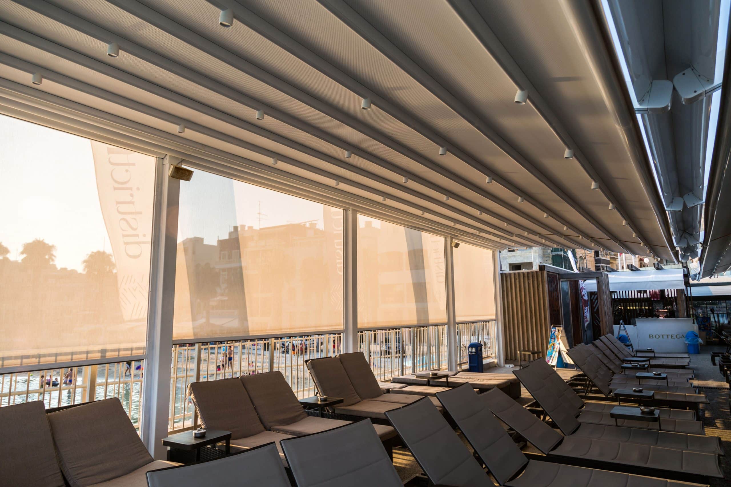 In 2019, Shadeex undertook a challenging project to install a high-quality pergola at the District Five restaurant in Birzebugga, Malta, located near the pool area. The total area covered was a staggering 550 square meters, and our team completed the entire project, including manufacturing, transportation, and installation, within six weeks. Our skilled team anchored 31 steel columns and fixed 27 steel cross beams, installing 17 retractable roofs and 10 motorized vertical shades to provide an unparalleled outdoor experience for the restaurant’s guests.