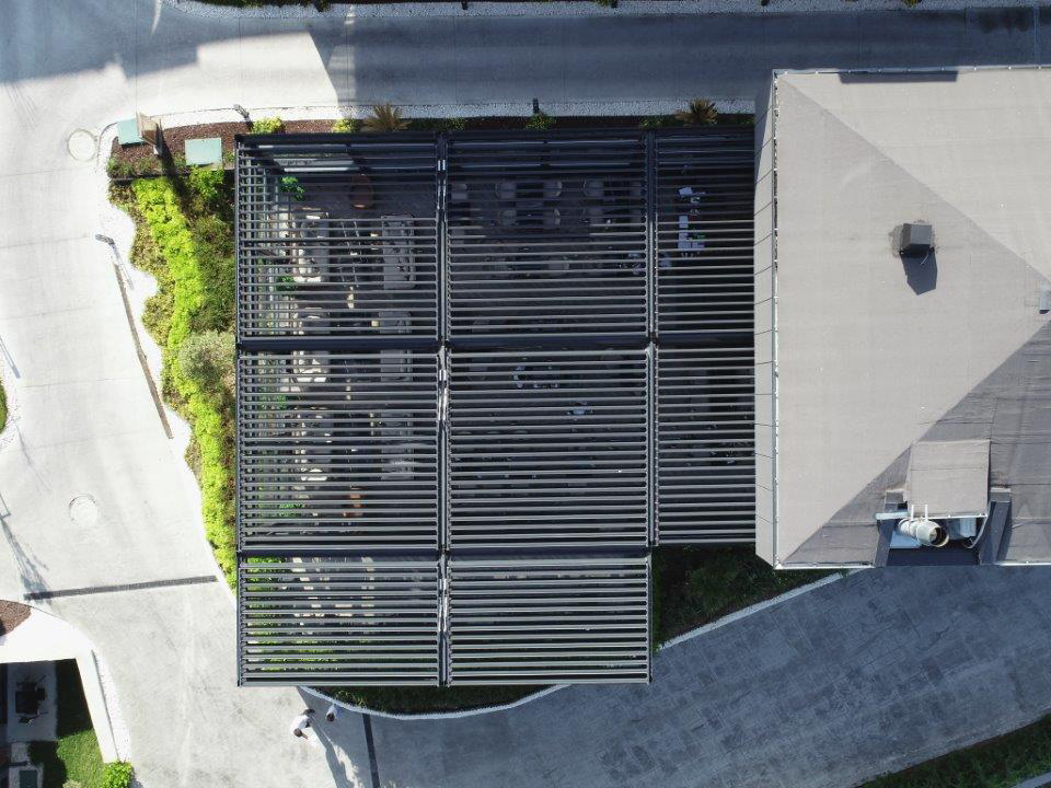 The Skylounge Bioclimatic pergola, with a rotating louvers roof and insulated glazing system, provides a big and spacious dining area that can be used in all weather conditions. During the summer months, the louver blades can be rotated, and the guillotine glass panels lowered to allow fresh, cool air to enter the space. The 4-meter high roof provides ample space and insulation, ensuring the area is comfortable for guests.